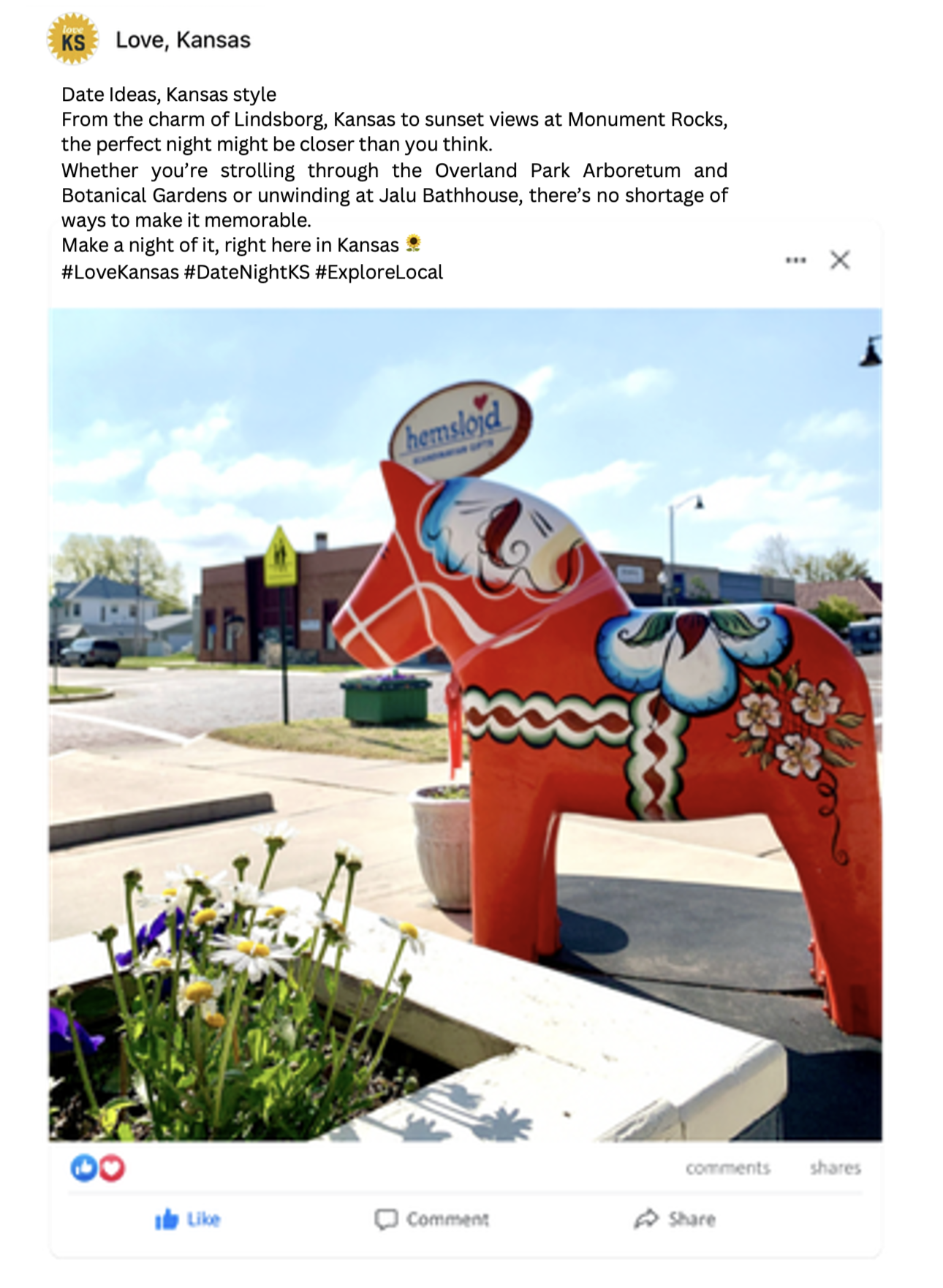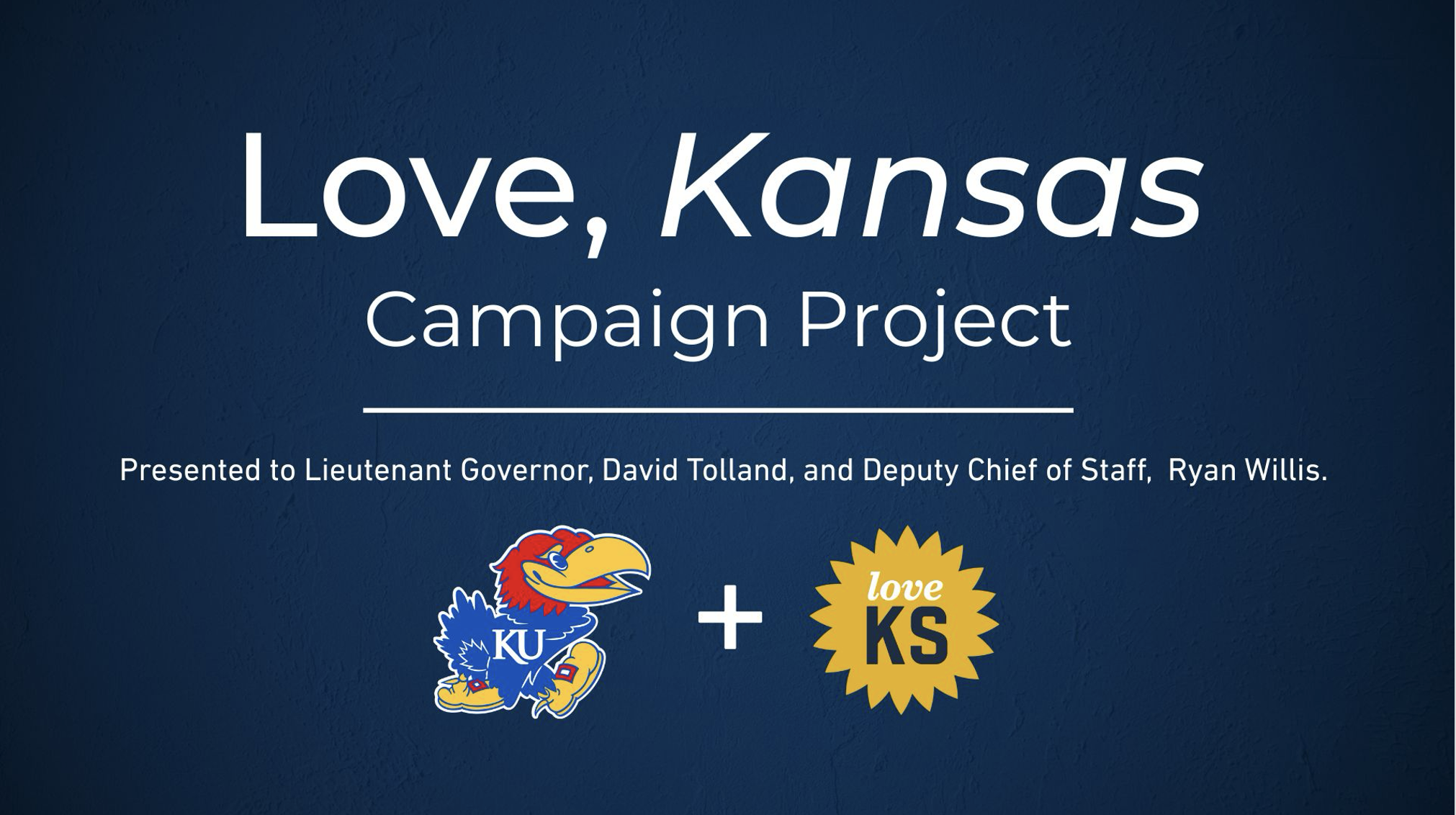 The Love Kansas group project focused on developing marketing strategies to attract and retain residents in Kansas. Working in a team of seven, we created a comprehensive campaign centered on community, lifestyle, and long-term engagement (includes link to group powerpoint).