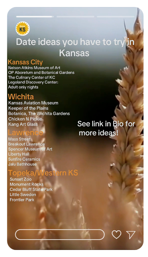 This project focuses on developing marketing strategies to attract and retain residents in Kansas as part of a team-based campaign. My contributions included creating a postcard mockup in collaboration with a partner, as well as individually designing social media content for Instagram and Facebook to support campaign messaging.